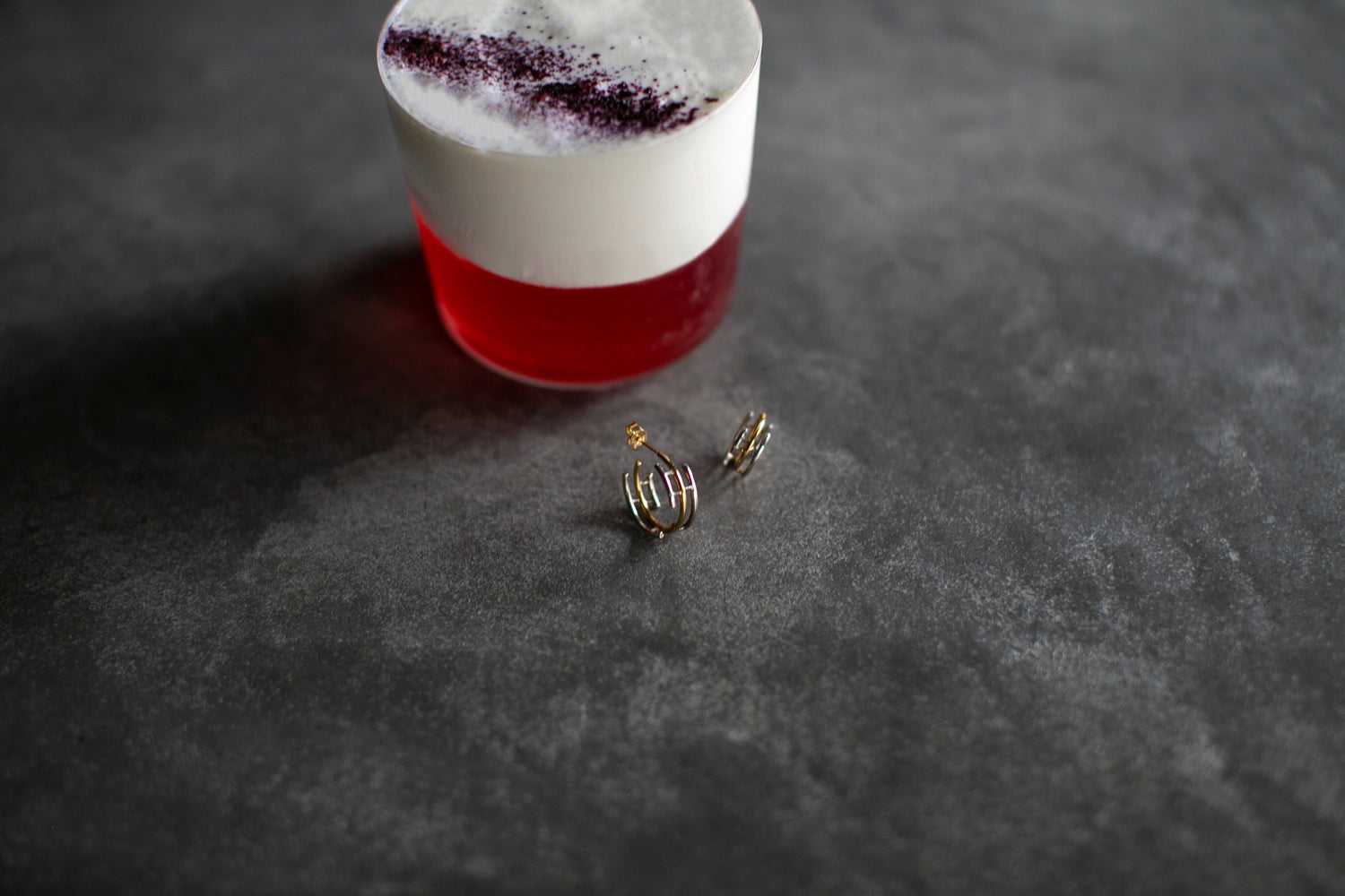宝石のように華やかなカクテルとジュエリーのペアリング。その日の気分に合わせてカクテルを選ぶのは、ジュエリーを選ぶそれと似ている。