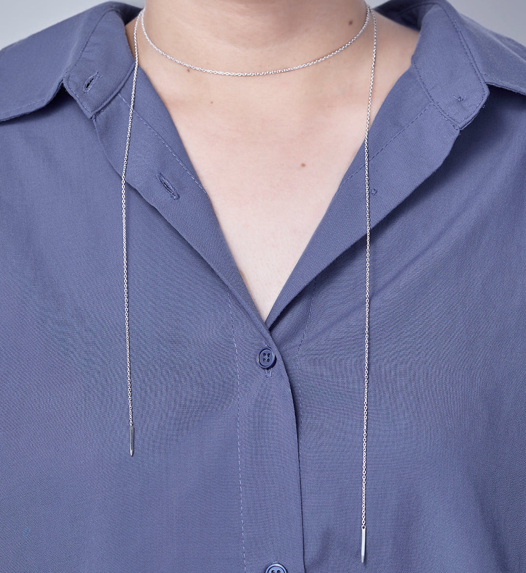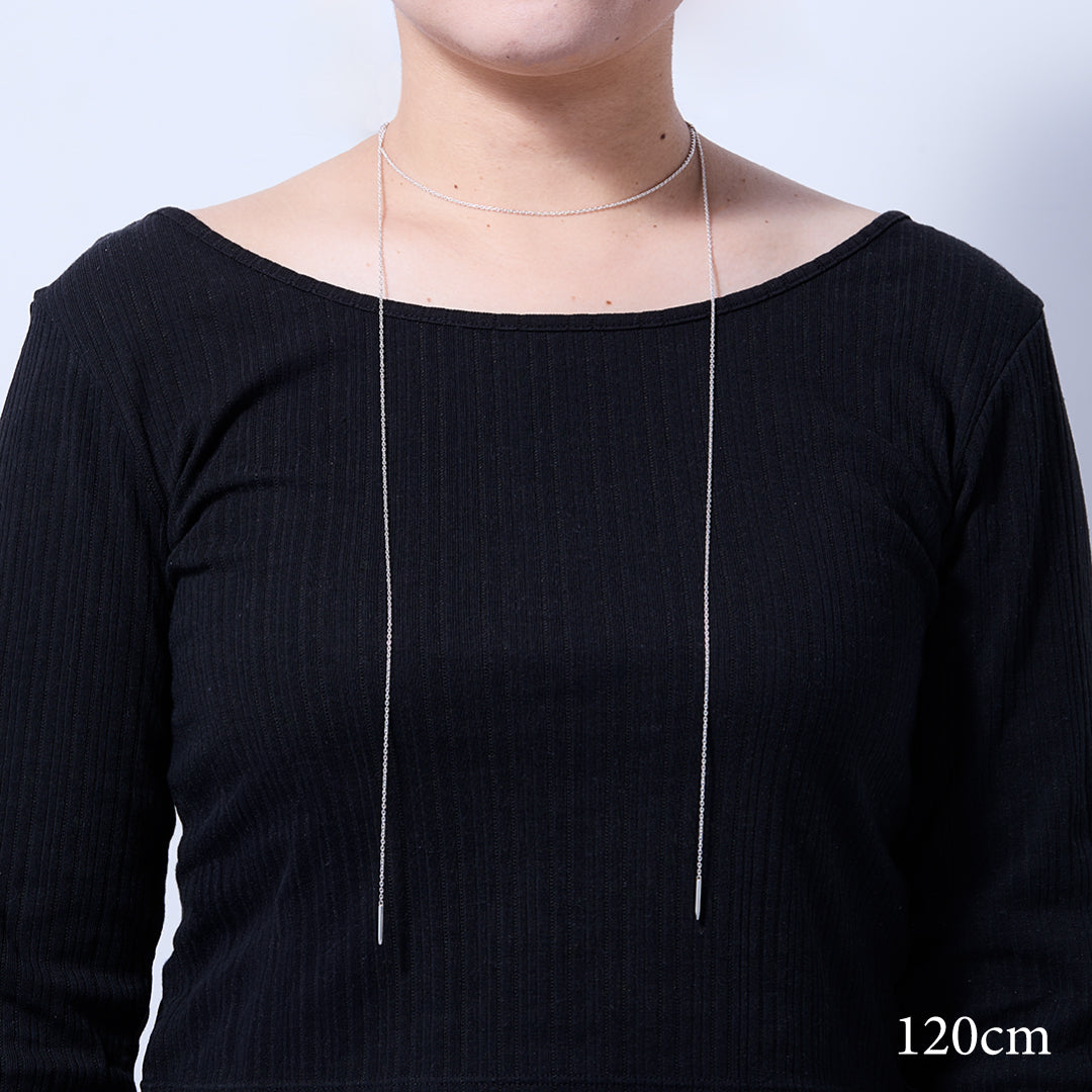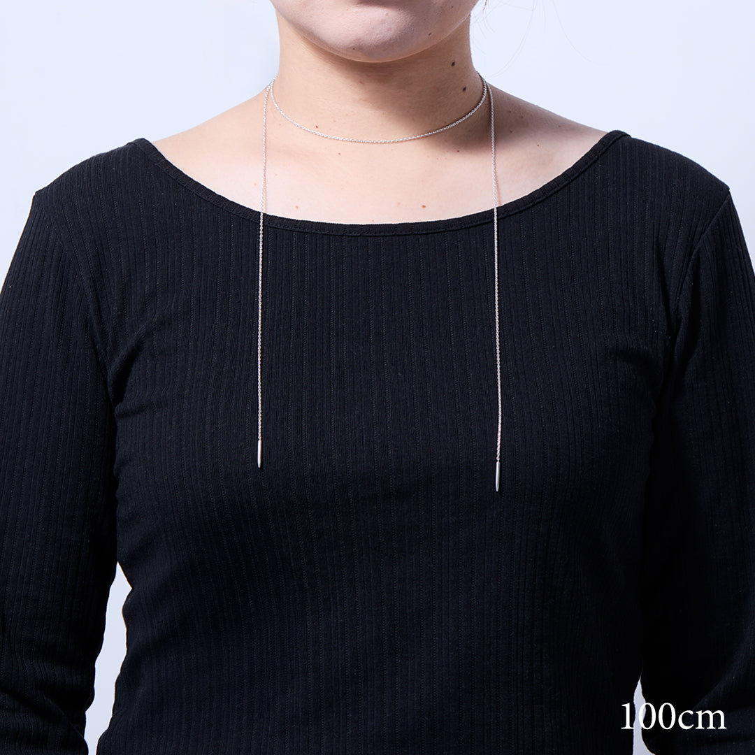 全長100cmを超えるシルバー925のチェーンは、ヒキワのないシームレスなデザイン。両端に配されたいびつな形のトップが、絶妙なバランスを生み出します。巻く、結ぶ、垂らす…あなたの手によって何通りにも表情を変え、縛られないスタイルを自由に楽しめます。