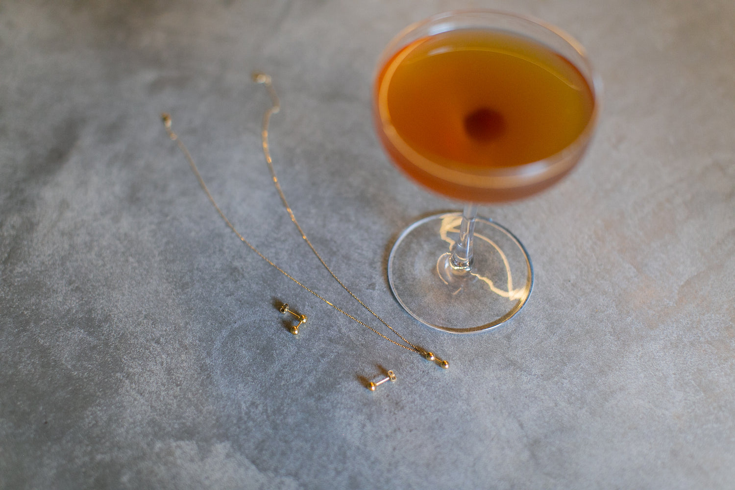 宝石のように華やかなカクテルとジュエリーのペアリング。その日の気分に合わせてカクテルを選ぶのは、ジュエリーを選ぶそれと似ている。