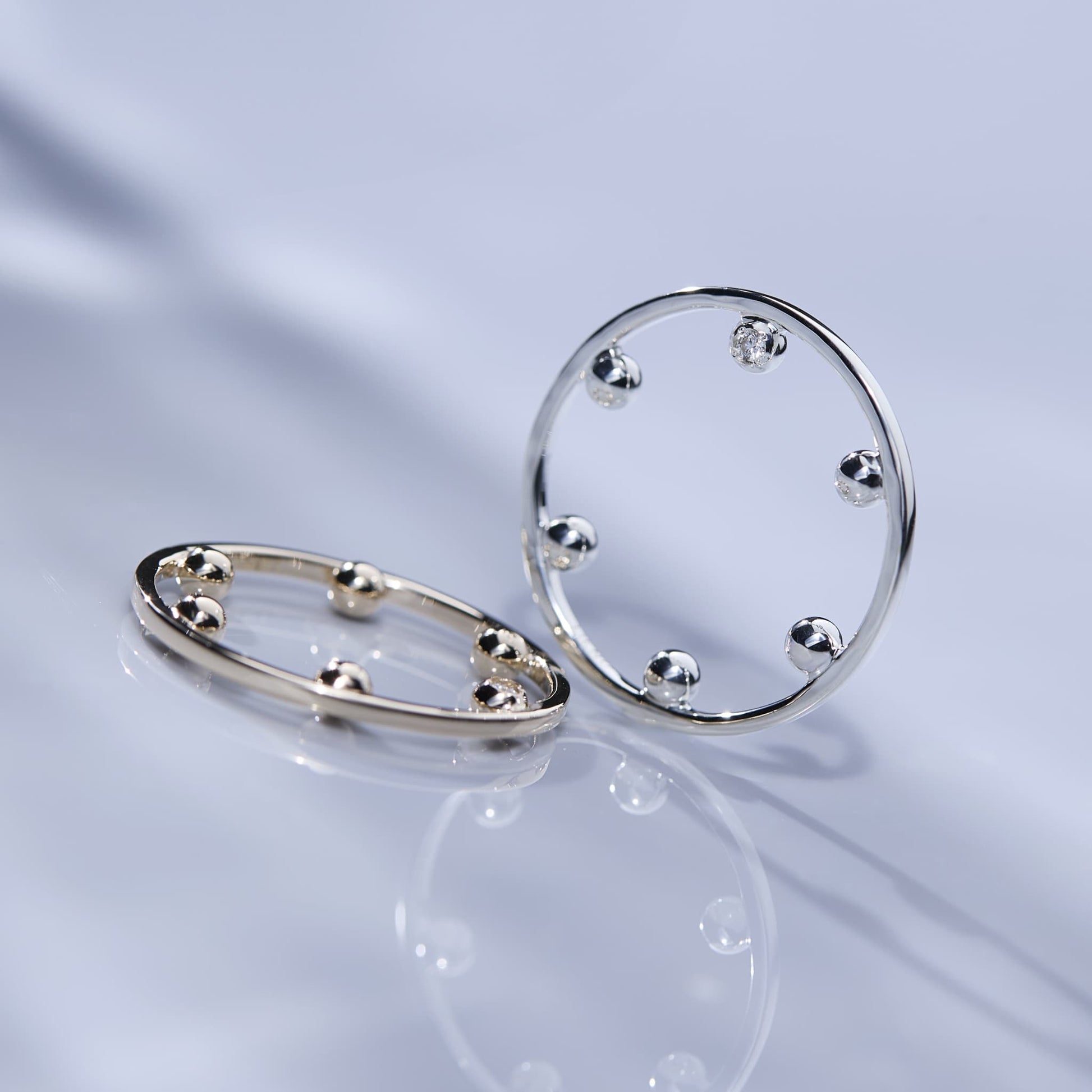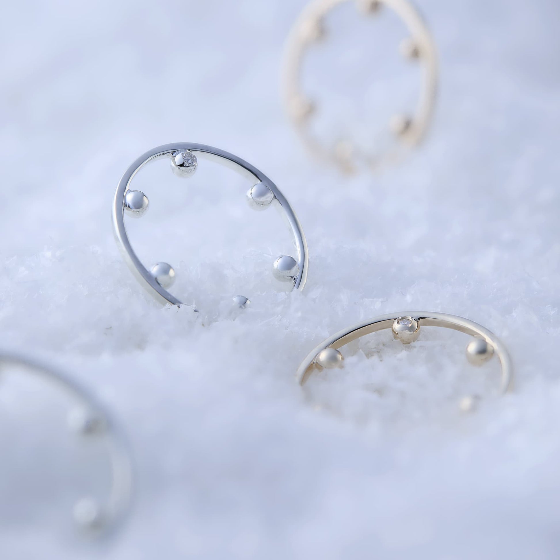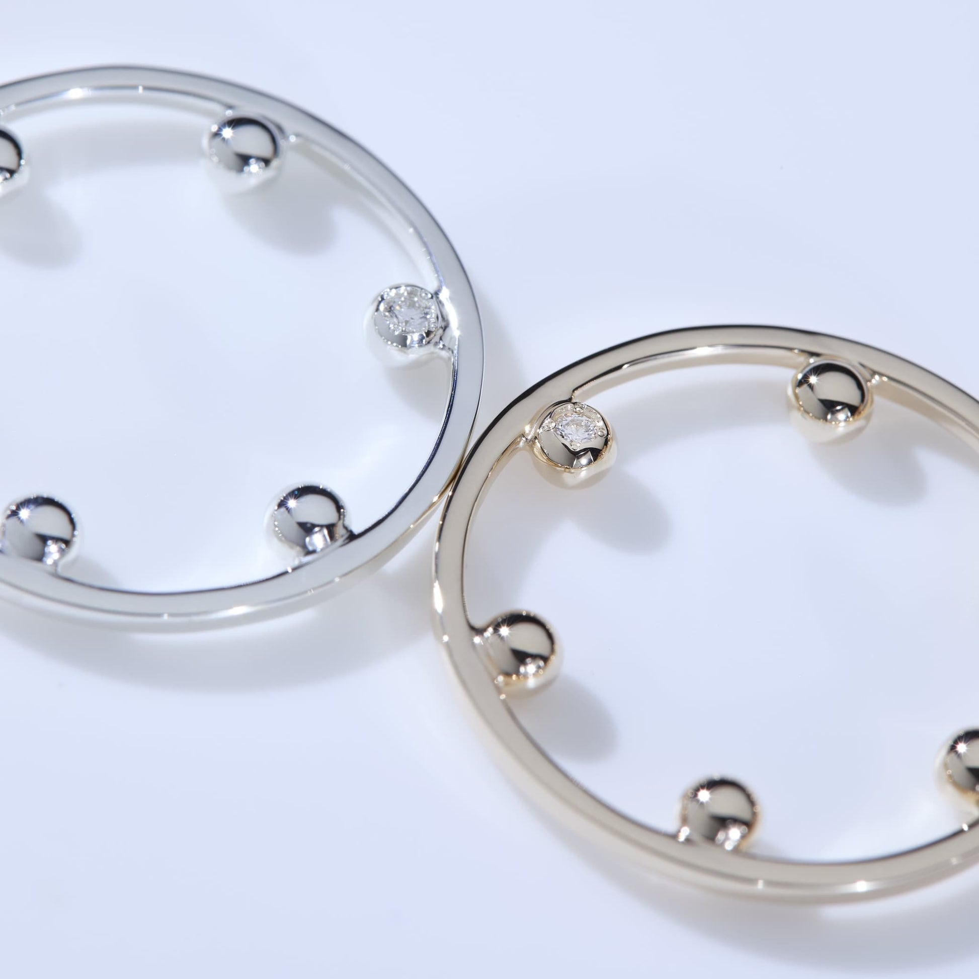 ポワンはフランス語で1という意味。6つのボールがリングの内側についている特徴的なデザインのリング。ボールの一粒にダイアが埋め込まれている贅沢なリングで、手元の遊びに輝きをプラス。